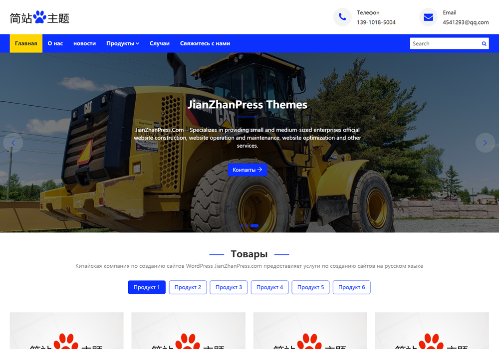 适合做俄罗斯生意的外贸公司使用的经典蓝色风格的wordpress俄语外贸网站模板。