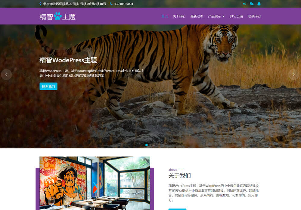 紫色艺术Wordpress主题,艺术家作品展示或工艺美术行业的企业官网WP模板。