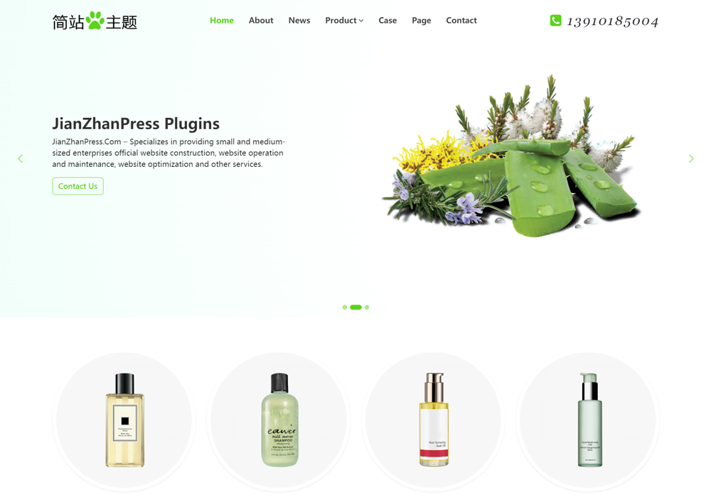 绿色简洁实用的wordpress外贸主题,适合做洗护用品、美容保养品的外贸公司官网使用。