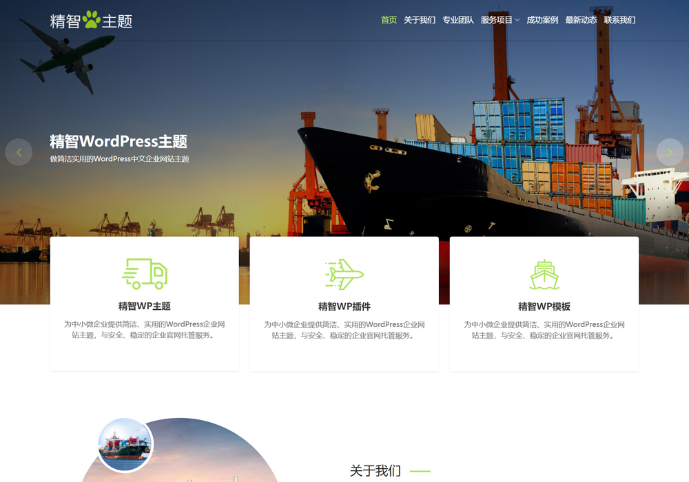 简洁大气的物流wordpress主题,物流运输行业企业的官方网站建站模板。