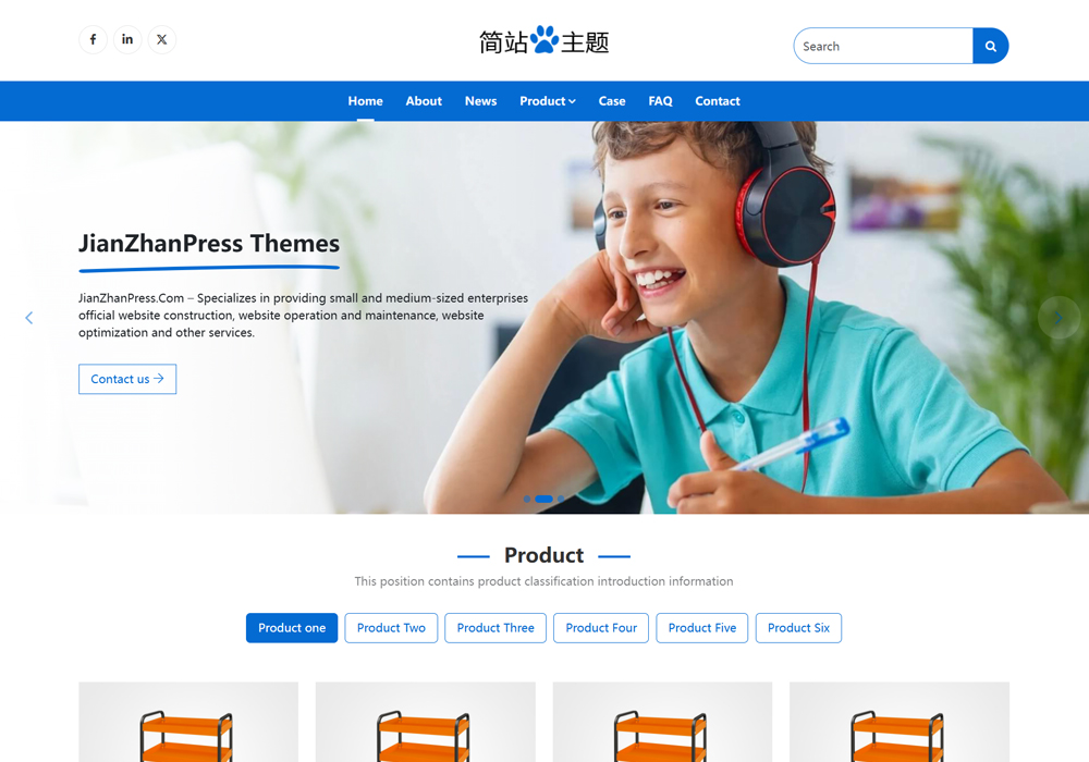 简洁实用的经典蓝色、红色搭配的wordpress外贸网站主题模板,外贸自建站主题。