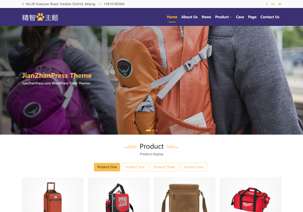 箱包企业wordpress主题,用于箱包生产加工制造企业或相关贸易公司官网模板。
