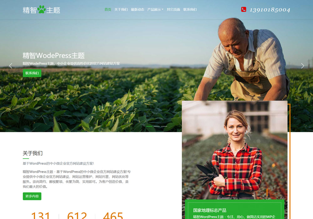 绿色农业三农产品营销推广WordPress主题模板,用于农业营销推广公司官网。