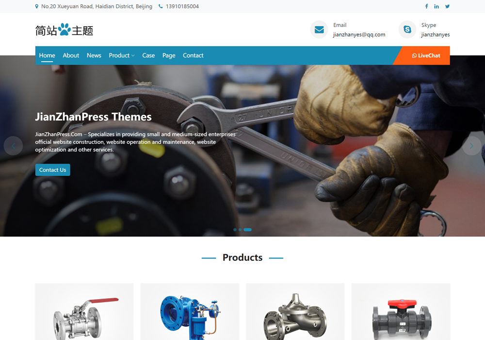 简洁实用的经典蓝色、红色搭配的wordpress外贸网站主题模板,外贸自建站主题。