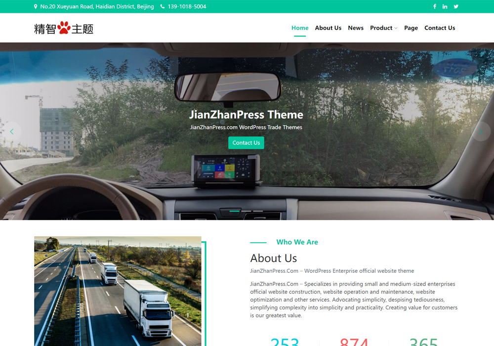 蓝色风格的WordPress外贸主题,适合用于建筑建材生产加工工厂使用。