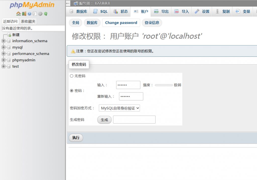 4、为XAMPP的root用户设置密码,比如,将密码设置为123456。