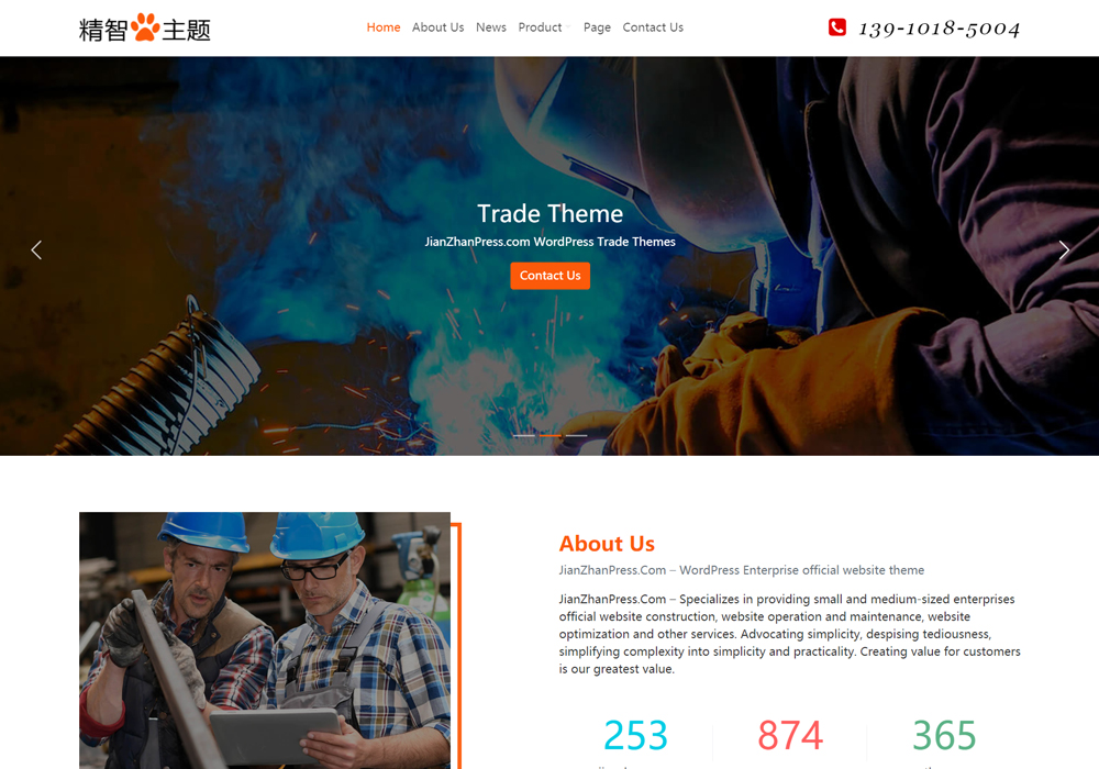 简洁又不失大气的wordpress外贸主题,适用于卖轴承出口的外贸公司官网使用。