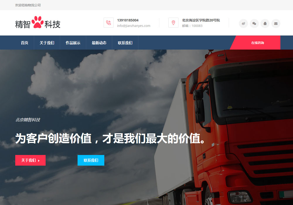 简洁大气的物流wordpress主题,物流运输行业企业的官方网站建站模板。