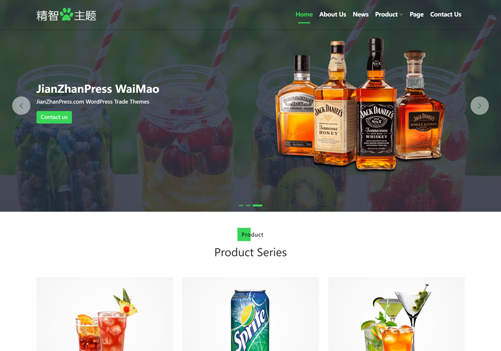 绿色、橙色、深蓝色搭配的wordpress外贸跨境主题,适合外贸公司或生产厂家官方网站使用。