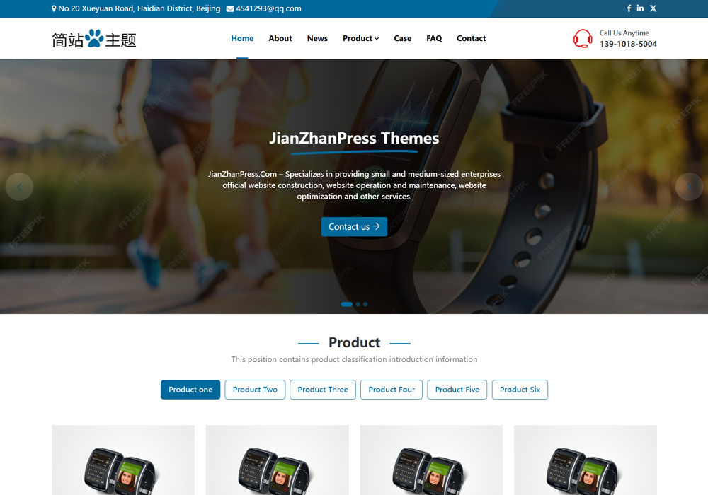蓝色极简风的wordpress模板主题,适用于外贸公司搭建产品展示型B2B网站使用。