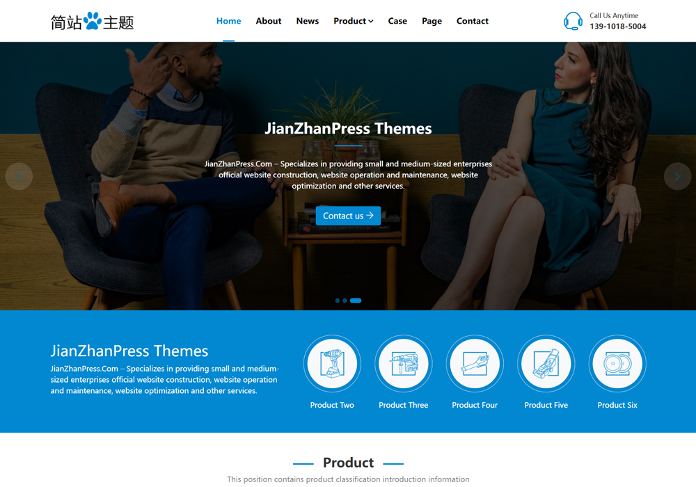 蓝色极简风的wordpress模板主题,适用于外贸公司搭建产品展示型B2B网站使用。