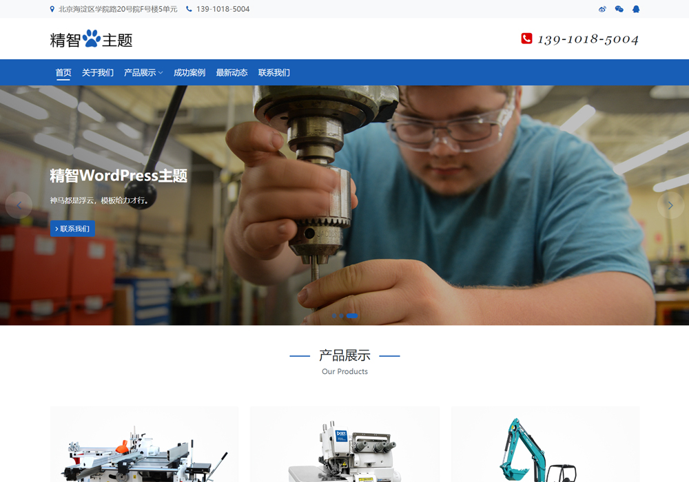蓝色的中文wordpress企业网站模板,适合生产、加工、制造业的公司官网使用。
