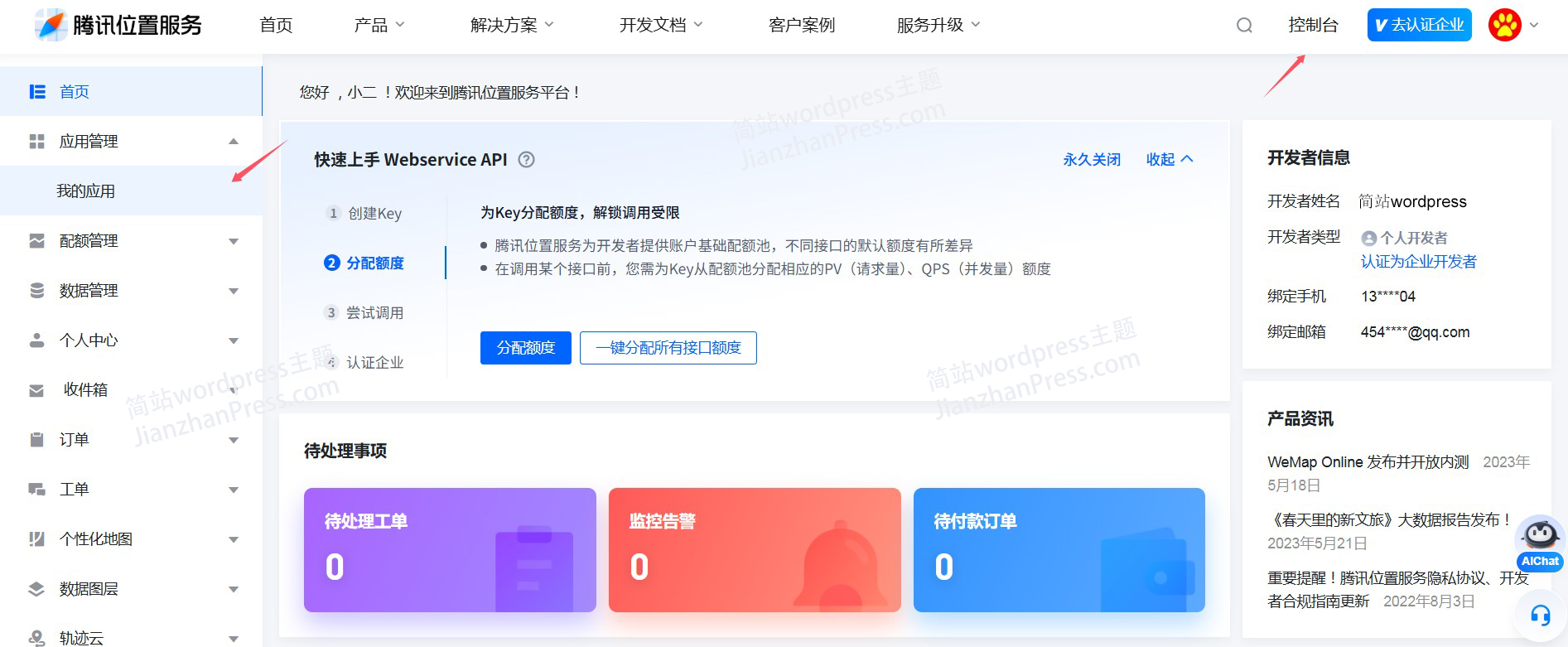 1、到腾讯地图官网注册开发者帐号,成为开发者。https://lbs.qq.com 如果已经注册过帐号,直接登陆就可以(注册过程略)。