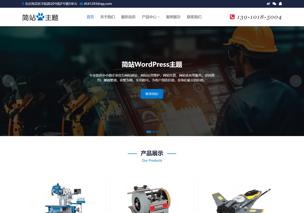 蓝色的中文wordpress企业网站模板,适合生产、加工、制造业的公司官网使用。