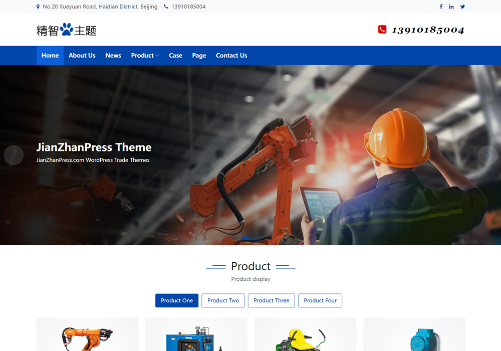机械及行业设备、五金工具、安全防护、包装、钢铁、纺织皮革等工业品wordpress外贸网站模板。