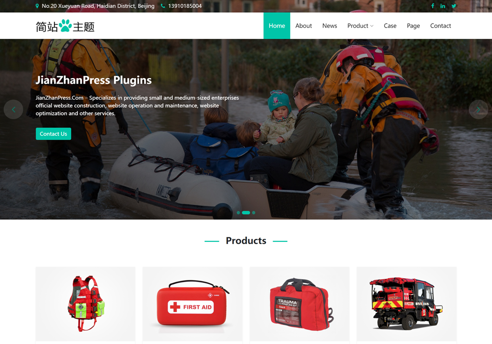 简约应急救援wordpress外贸主题,适合做救援设备、物资等产品的外贸公司使用。