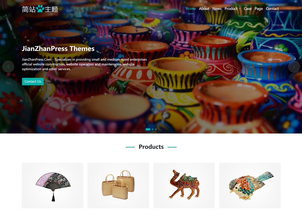 简约大气的wordpress外贸主题,适合做工艺品进出品外贸的公司官网使用。